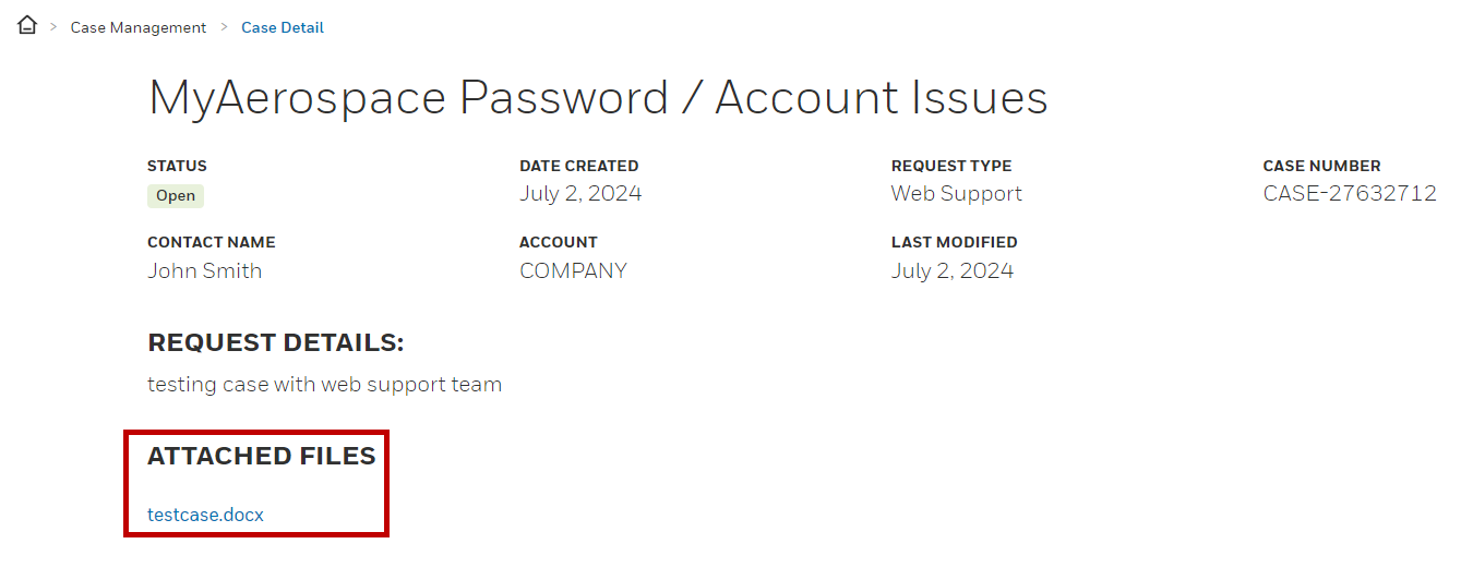 In the Case Detail page for the selected case, please refer to the Attached Files section to view a comprehensive list of attachments, which includes files shared by Honeywell as well as files you have uploaded.